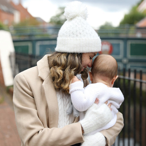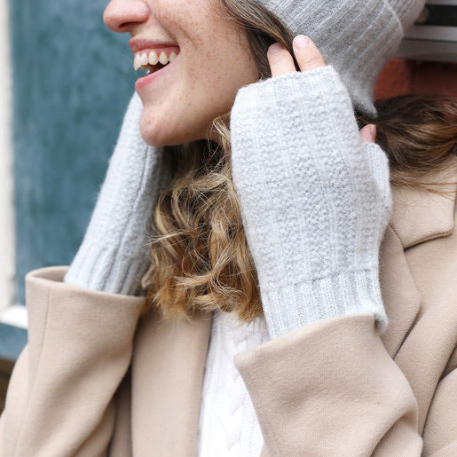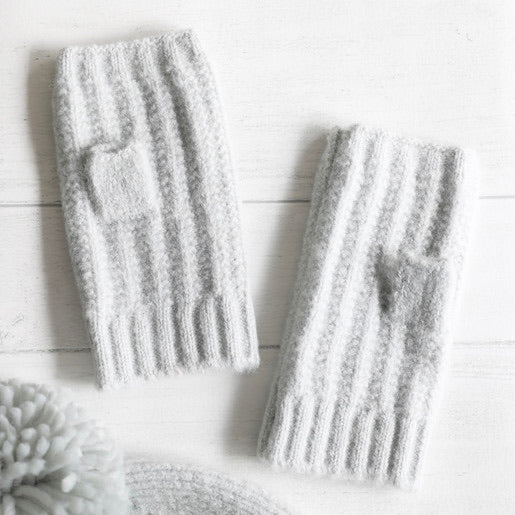 Soft cable knit fingerless gloves in creamy white & light dove grey